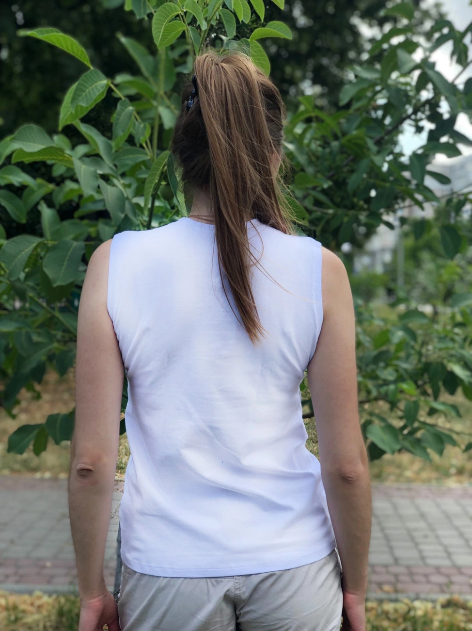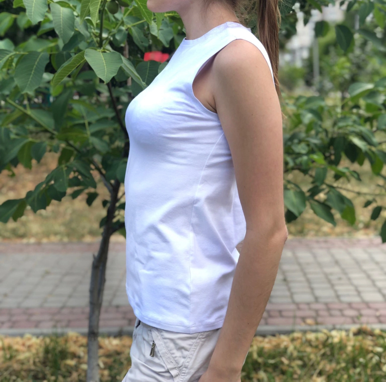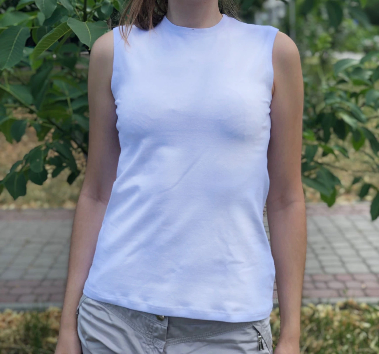 Женская футболка без рукавов выполнена из натурального материала: Кулир.